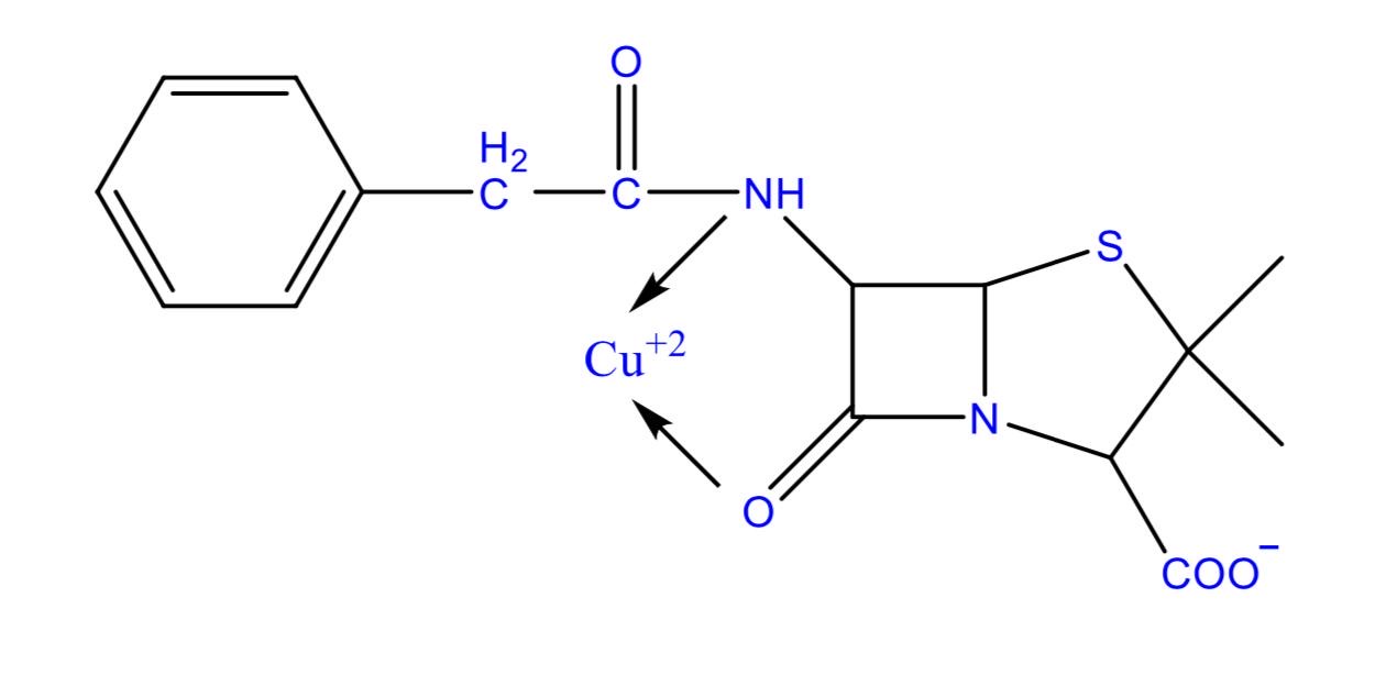 β-Lactam antibiotics form chelates with metal ions such as Cu+2 (Fig. 4). The β-lactam ring is much more susceptible to specific base hydrolysis (i.e., toward OH– attack) when complexed than when uncomplexed. Thus, formation of such chelates can significantly decrease the shelf-life of β-lactam antibiotics.
