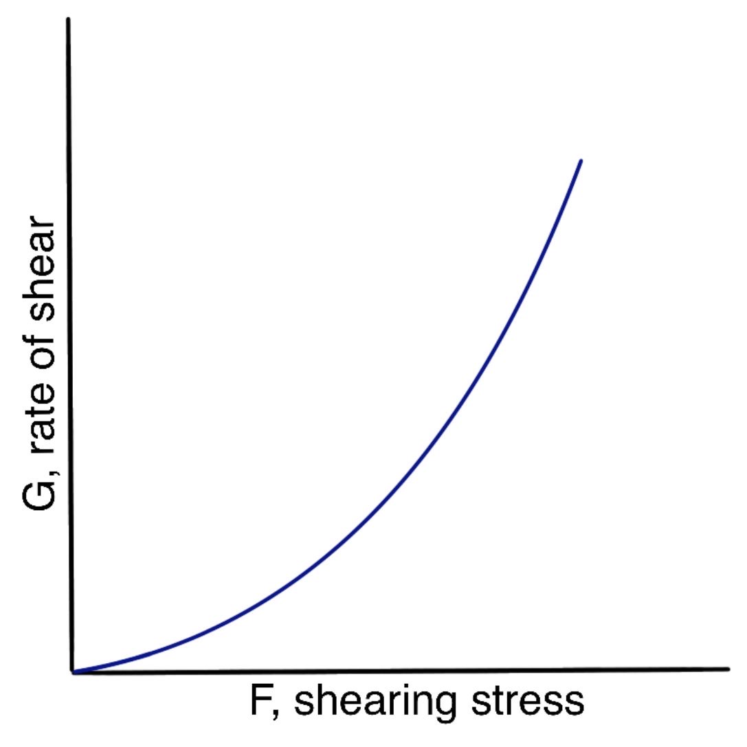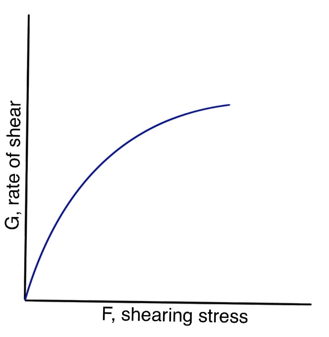 In Figure 1, the curve represents a material that exhibits plastic flow; such materials are known as Bingham bodies, named after the pioneer of modern rheology who first systematically studied plastic substances.