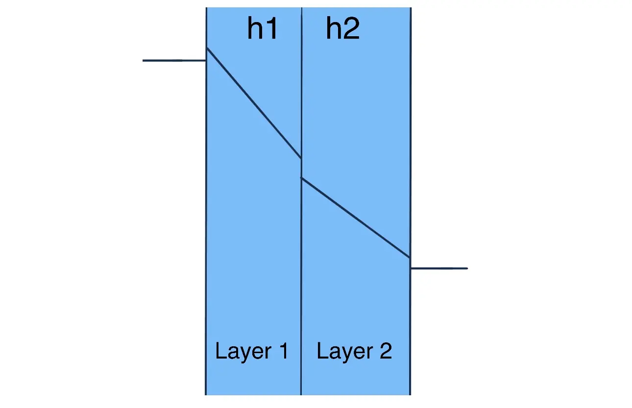 Consider two barriers in series with thickness h1 and h2, respectively,(as shown in figure 3). The total resistance to diffusion (R) can be expressed as the sum of the individual resistances: